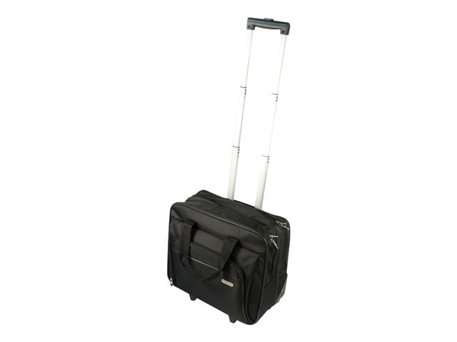 La mallette Targus Rolling Laptop Case a ete concue pour recevoir des ordinateurs portables equipes d'un ecran allant jusqu'a 16". Le rembourrage en mousse a cellules fermees protege votre ordinateur portable et le materiau en polyester 1200D durable et resistant a l'eau maintient vos affaires au sec dans les intemperies. Le poste de travail avant a fermeture eclair descendante comprend des porte-stylos, un porte-cartes de visite, une poche zippee, une pochette pour telephone portable et une grande poche pour ranger les autres accessoires. La mallette Rolling Laptop offre egalement un grand compartiment zippe pour ranger vos fournitures ou vos vetements pour les deplacements de courte de duree. La poignee telescopique se retracte dans le compartiment zippe quand elle n'est pas utilisee et la mallette est dotee d'une double poignee de transport pour plus de commodite. La Rolling Laptop Case est une mallette de voyage fonctionnelle concue pour les professionnels en deplacement.