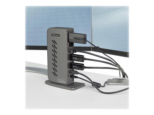 Passez de l'ancienne norme USB-A (USB 3.1/3.0) aux nouveaux ordinateurs portables USB-C grâce à cette station d'accueil universelle pour ordinateurs portables USB-C et USB-A. La station d'accueil USB 3.1 Gen 1 (5 Gbps) Type-C dispose de deux écrans HDMI et/ou DisplayPort, de six ports périphériques USB Type-A en aval et d'un casque audio.