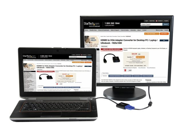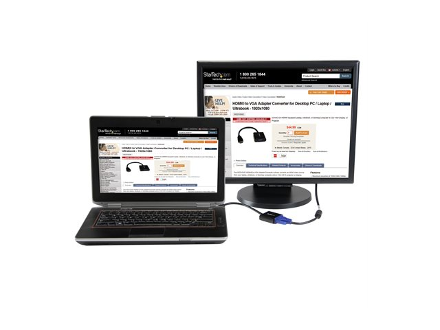 StarTech.com Adaptateur / Convertisseur HDMI vers VGA pour ordinateur de bureau / ordinateur portable / Ultrabook - M/F - 1920x1080 - Noir - High Speed - adaptateur vidéo - HDMI mâle pour HD-15 (VGA) femelle - 24.5 cm - noir - support 1080p, actif - pour P/N: DK30C2DPEPUE, DK30C2DPPDUE, DK31C3HDPD, DK31C3HDPDUE, SV211HDUC, SV221HUC4K