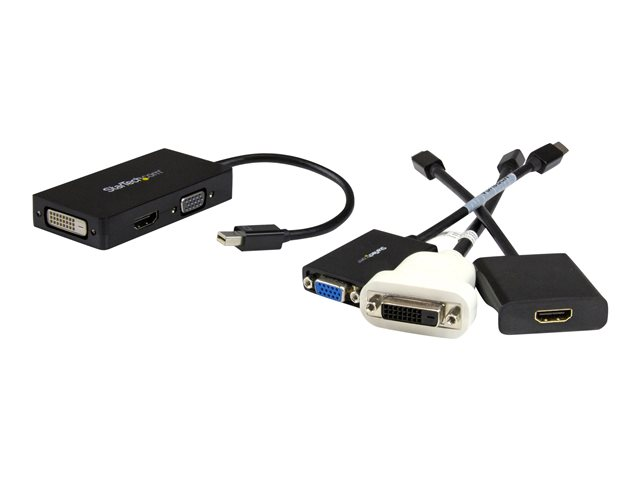 StarTech.com Adaptateur Mini DisplayPort 3 en 1 - 1080p - Répartiteur Mini DP / Thunderbolt vers HDMI / VGA / DVI pour Votre Moniteur (MDP2VGDVHD) - Adaptateur vidéo - Mini DisplayPort mâle pour HD-15 (VGA), DVI-D, HDMI femelle - 27 cm - noir - actif, support 1920 x 1200 (WUXGA) - pour P/N: DKT31CMDPHPD