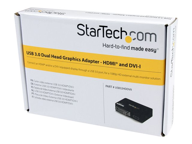StarTech.com Adaptateur vidéo multi-écrans USB 3.0 vers HDMI et DVI - Carte graphique externe - M/F - 2048x1152 - Adaptateur vidéo - Conformité TAA - USB Type B femelle pour DVI-I, HDMI femelle - noir - prise en charge de 2048 x 1152 à 60 Hz - pour P/N: HDDVIMM3, HDMM12, HDMM15, HDMM1MP, HDMM2MP, HDMM3, HDMM3MP, HDMM50A, HDMM6, HDPMM50