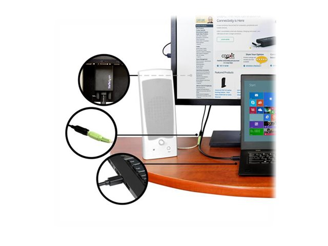 Grâce à cet adaptateur, vous disposerez toujours des connexions dont vous avez besoin. Le port audio de votre ordinateur est abîmé ou bloqué ? Avec ce câble adaptateur, vous aurez quand même du son pour regarder des présentations vidéos, écouter de la musique en travaillant ou discuter sur Skype avec vos collègues.