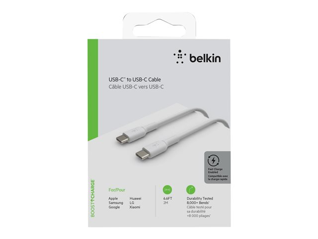 Belkin BOOST CHARGE - Câble USB - 24 pin USB-C (M) pour 24 pin USB-C (M) - 2 m - blanc