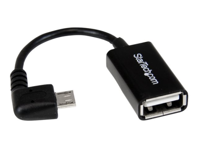StarTech.com Câble adaptateur Micro USB à angle droit vers USB Host OTG de 12cm - Adaptateur USB On-The-Go coudé - Mâle / Femelle - Adaptateur USB - USB (F) pour Micro-USB de type B (M) - USB 2.0 OTG - 12.7 cm - connecteur à angle droit - noir