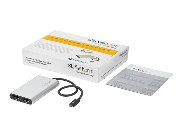 StarTech.com Adaptateur Thunderbolt 3 vers double DisplayPort - 4K 60 Hz - Compatible Mac et Windows (TB32DP2T) - Adaptateur USB / DisplayPort - 24 pin USB-C (M) pour DisplayPort (F) - Thunderbolt 3 - 30 cm - support 5K, actif - argent - pour P/N: TB33A1C