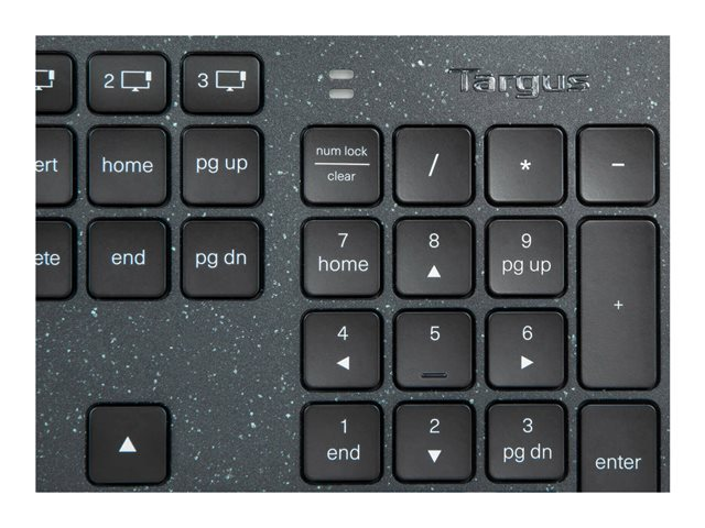 Targus EcoSmart - Clavier - collecte durable d'énergie - antimicrobienne - rétroéclairé - sans fil - Bluetooth 5.0 - QWERTY - Allemand - commutateur : commutateurs à clé à ciseaux - noir - emballages recyclés