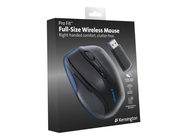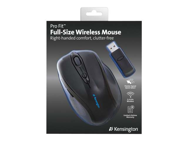 Kensington Pro Fit Full-Size - Souris - pour droitiers - optique - 6 boutons - sans fil - 2.4 GHz - récepteur sans fil USB - noir