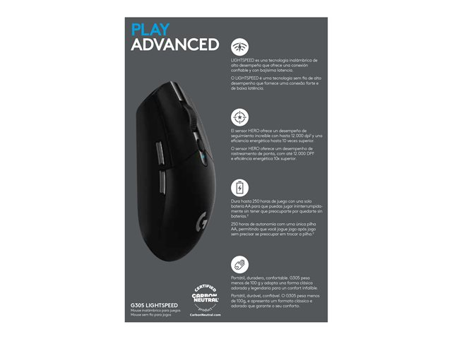 Logitech G G305 - Souris - optique - 6 boutons - sans fil - 2.4 GHz - récepteur sans fil USB - noir