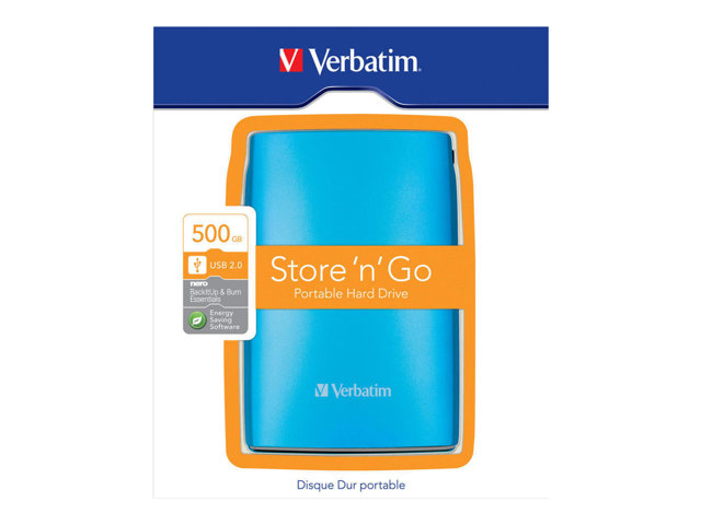 Verbatim Store 'n' Go Portable - Disque dur - 500 Go - externe (portable) - USB 2.0 - 5400 tours/min - bleu des Caraïbes 53011