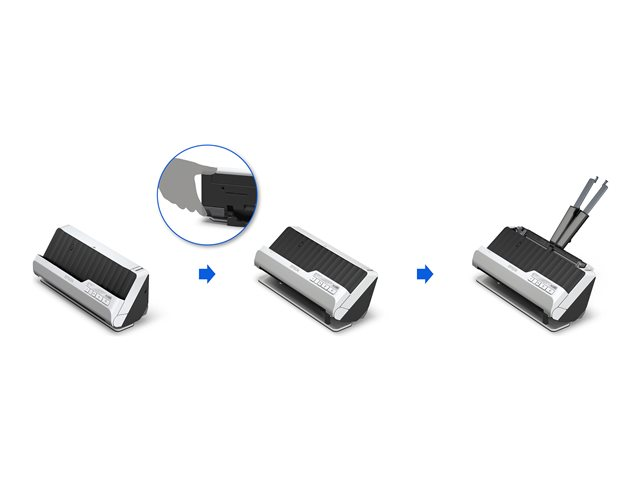 Son sélecteur permet de basculer facilement entre le mode de circuit papier droit et en « U », même durant son fonctionnement, ce qui permet de créer un PDF unique. Lorsque ce scanner est en mode de numérisation en « U », le papier peut être numérisé sans augmenter l'encombrement de l'appareil, ce qui en fait le choix idéal lorsque l'espace est restreint.