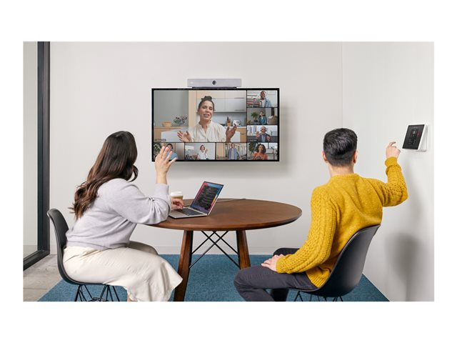 CaractéristiquesDétection des visages, réglage automatique de la luminosité, balance automatique des blancs, Annulation d'écho acoustique (AEC), fréquence de trame 30 Hz, champ de vision 120° (horizontal), suivi des orateurs, champ de vision 95° (vertical), type de capteur d'image CMOS 1/2,3, focus fixe, ouverture de l'objectif F 2,5