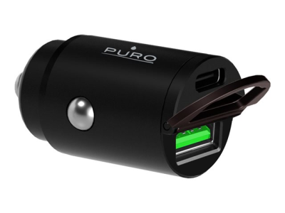 Puro - Adaptateur d'alimentation pour voiture - 30 Watt - 3 A - Fast Charge, PD - 2 connecteurs de sortie (USB, 24 pin USB-C) - noir