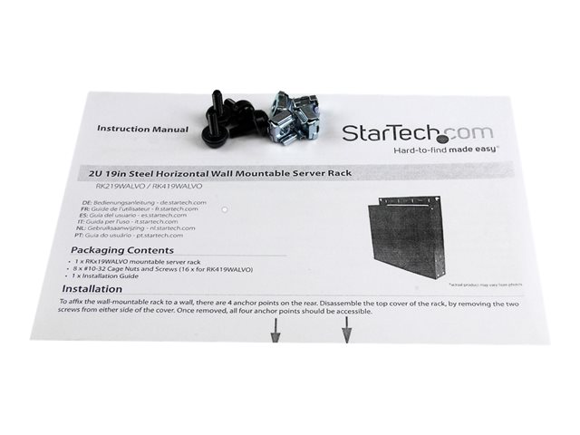 StarTech.com Rack de serveur en acier a fixation murale - 2U - Rack - montable sur mur - noir - 2U - 19"