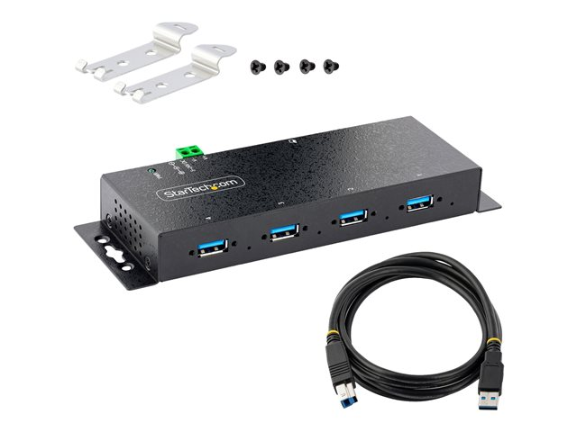 StarTech.com 4-Port Industrial USB 3.0 5Gbps Hub, Rugged USB Hub w/15kV Air/8kV Contact ESD and Surge Protection, DIN/Wall/Desk Mountable USB-A Hub, USB Expansion Hub with Locking Ports - Metal Construction (5G4AINDNP-USB-A-HUB) - Concentrateur (hub) - industriel - 4 x USB 3.2 Gen 1 - de bureau, Montage sur rail DIN, fixation murale
