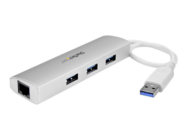 StarTech.com Hub USB 3.0 portable à 3 ports avec Gigabit Ethernet - Concentrateur USB 3.0 GbE avec boîtier en aluminium et câble intégré - Concentrateur (hub) - 3 x SuperSpeed USB 3.0 + 1 x 10/100/1000 ST3300G3UA