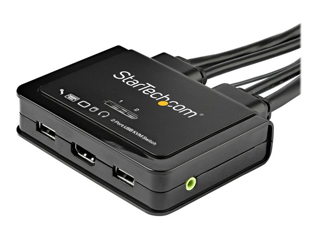 StarTech.com 2 Port HDMI KVM Switch, 4K 60Hz, Compact Dual Port UHD/Ultra HD USB Desktop KVM Switch with Integrated 4ft Cables & Audio, Bus Powered & Remote Switching, MacBook ThinkPad - 4K KVM Switch w/ Audio (SV211HDUA4K) - Commutateur écran-clavier-souris/audio - 2 x KVM / audio - 1 utilisateur local - de bureau