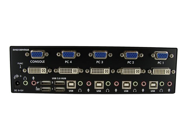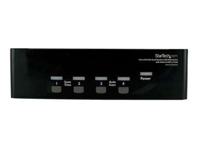 Le commutateur KVM DVI VGA à 4 ports pour deux écrans, SV431DDVDUA, vous permet de contrôler quatre ordinateurs à deux écran à l'aide d'un seul ensemble de périphériques USB (souris et clavier).