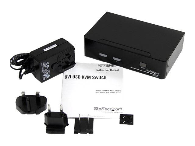 Le commutateur KVM DVI USB 2 ports SV231DVIUA vous permet de contrôler deux ordinateurs compatibles USB et DVI à partir d'un ensemble unique avec écran et périphériques (clavier, souris et haut-parleurs), et deux périphériques USB supplémentaires branchés aux ports USB intégrés au hub.