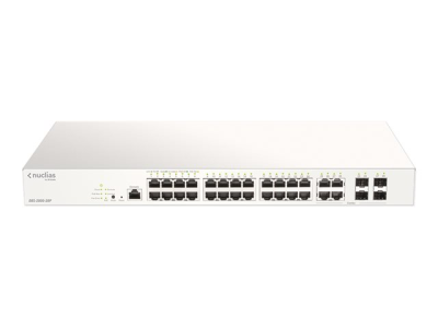 D-Link Nuclias Cloud-Managed DBS-2000-28P - Commutateur - intelligent - 24 x 10/100/1000 (PoE+) + 4 x SFP Gigabit combiné - Montable sur rack - PoE+ (193 W) - avec 1 an de Nuclias Cloud Management - pour P/N: DEM-211, DEM-310GT, DEM-311GT, DEM-312GT2, DGS-712