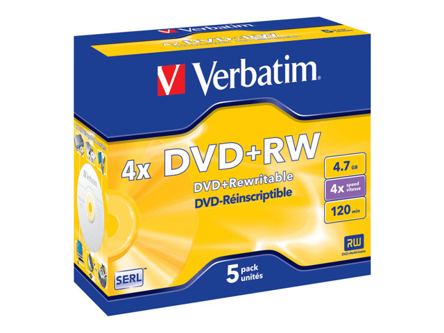 Verbatim DataLifePlus - 5 x DVD+RW - 4.7 Go 4x - boîtier CD